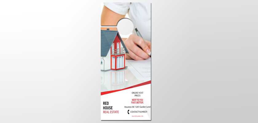 Picture this. Your prospect arrives home and gets out of the car. She checks the mail and absentmindedly rifles through a stack of uninviting junk mail. Then she goes to the front door, and slowly starts to turn the handle. But wait…something stops her in her tracks. Hanging on the door is the full color, professional-quality, eye-catching door hanger your company has strategically placed on the knob.